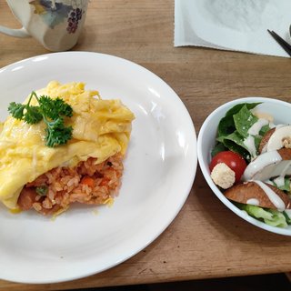 連休なのにどこにも連れていっていない(大人だけ出かけてるけど)ので、せめて食事くらいは手を掛けてやろうという母心。サラダもトッピング多めのカフェ風に。オシャレじゃ~ん。卵の火加減もパーフェクトだった。