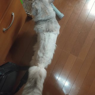 サマーカットにしろよと、ダンナは気軽に言いますが、一人で動き回る猫の毛を切るのは大変なんだよ。